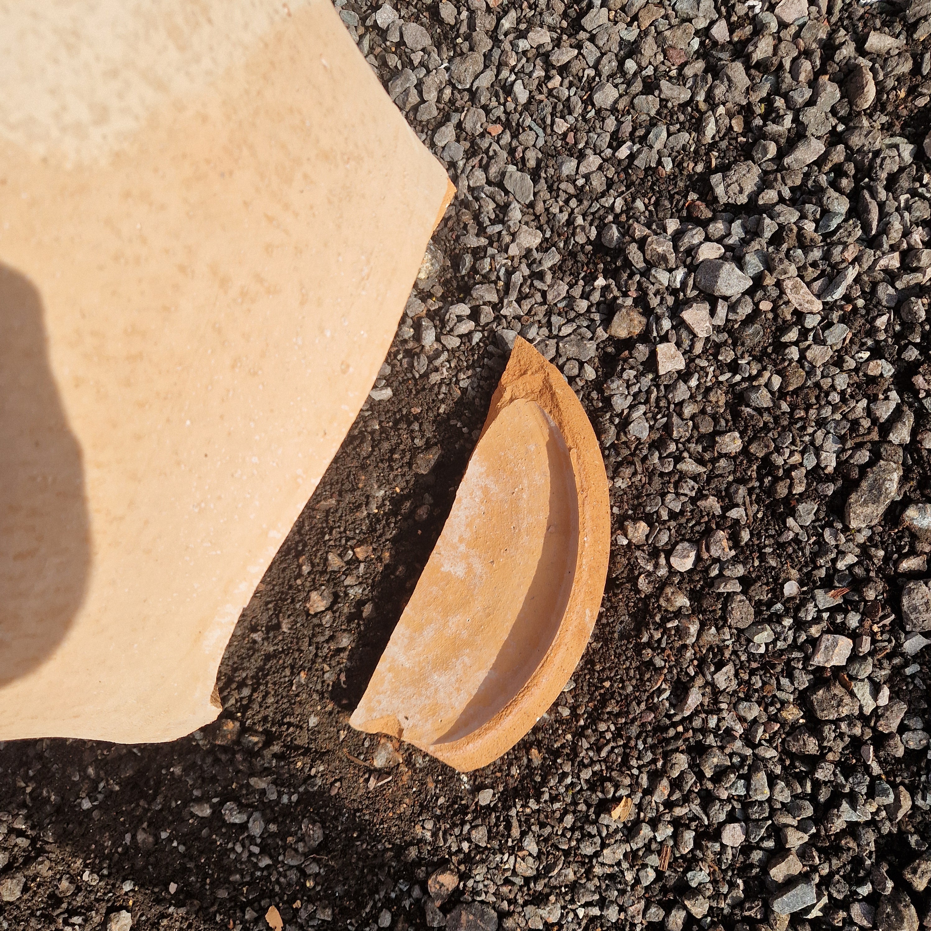 Half of the foot has cracked off. Fine for standing in a border. For some pocket money Thomas can look to stick the two parts together.