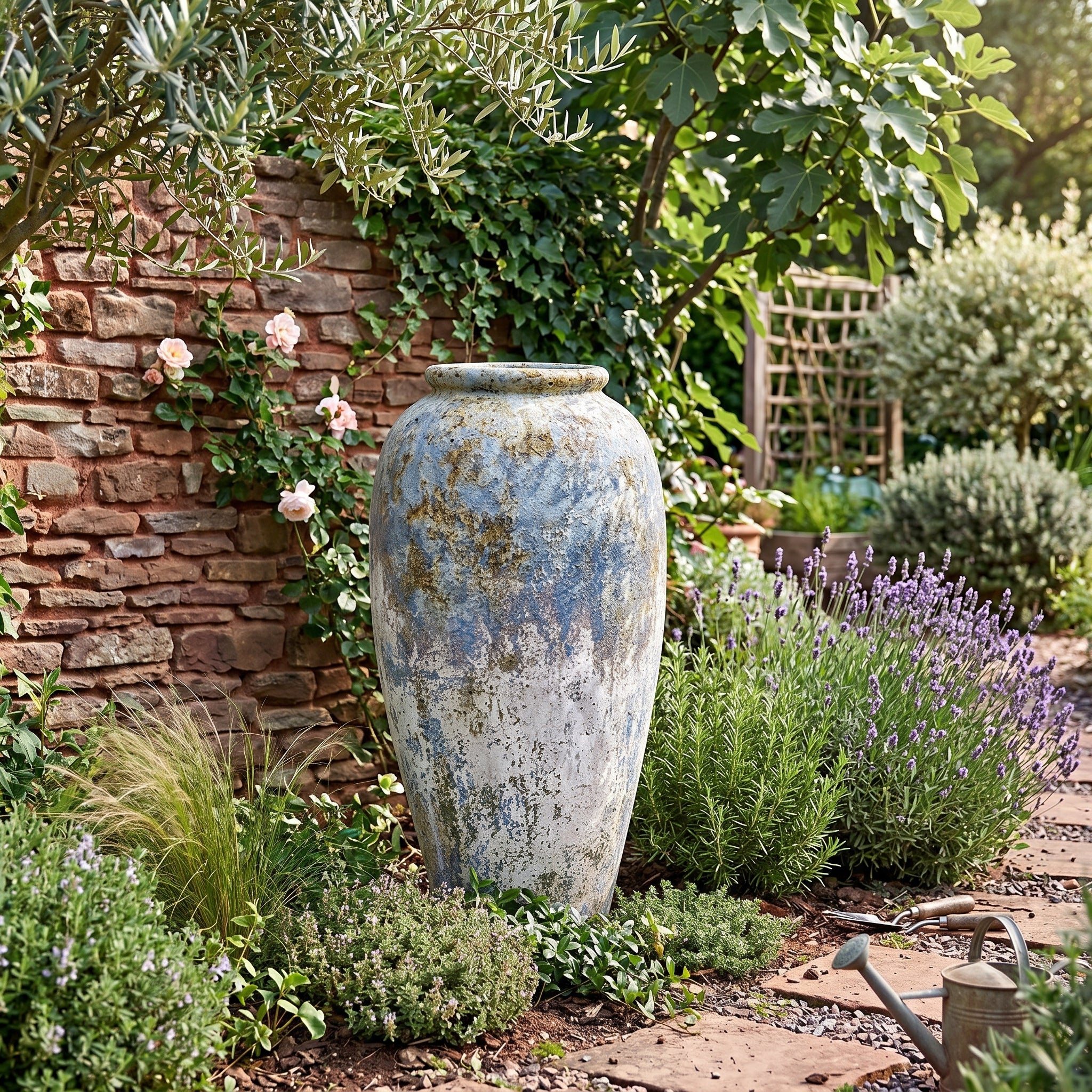 If the pot is enclosed with a narrow neck I advise that you avoid permanent planting or use a removable plastic pot within the terracotta pot. Otherwise the roots will grow into the ‘belly’ of the vessel making the plant extremely difficult to remove.