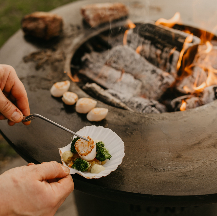 Most of the Bonfeu range of firepits & outdoor fireplaces can be turned from standard heat sources into fun & exciting methods to cook food. A steel Plancha is most commonly used throughout this range.