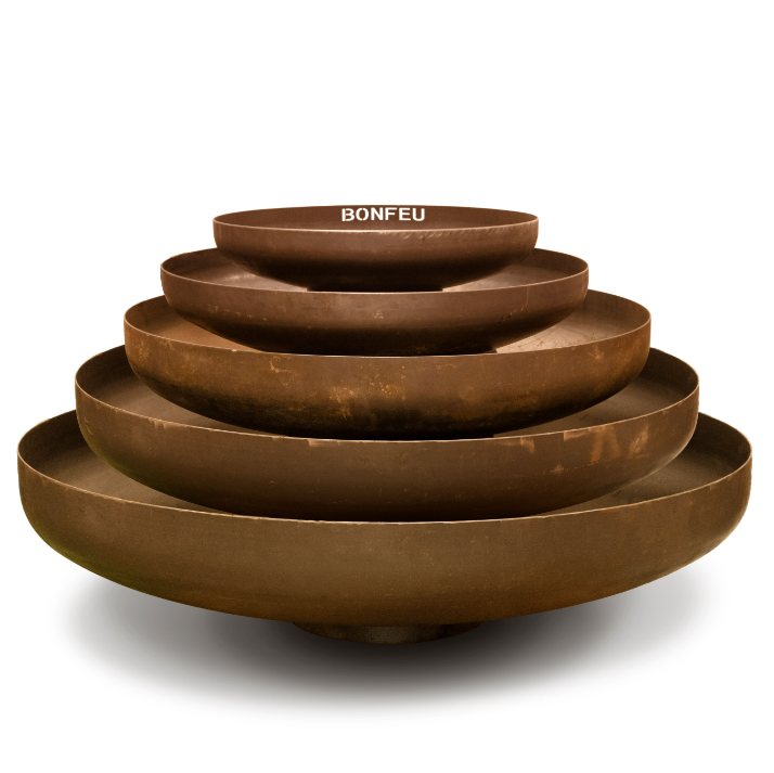 The BonBowl is a corten steel fire bowl from BonFeu.