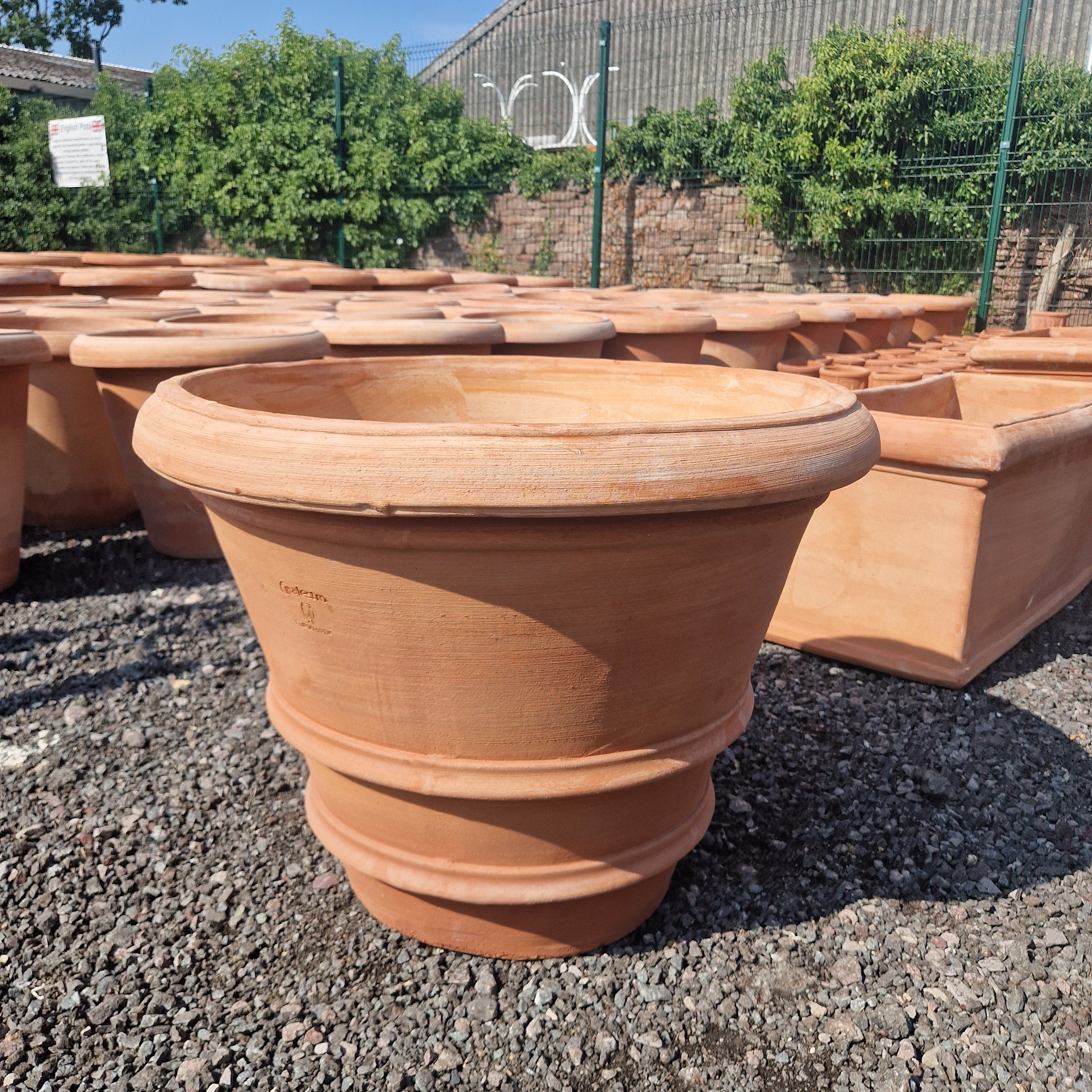 An array of our Classic 70cm Italian Planters from Italy. Sale price includes standard kerbside pallet delivery. Select collection from the Yard at checkout and we will refund £50 from your order upon confirmation.