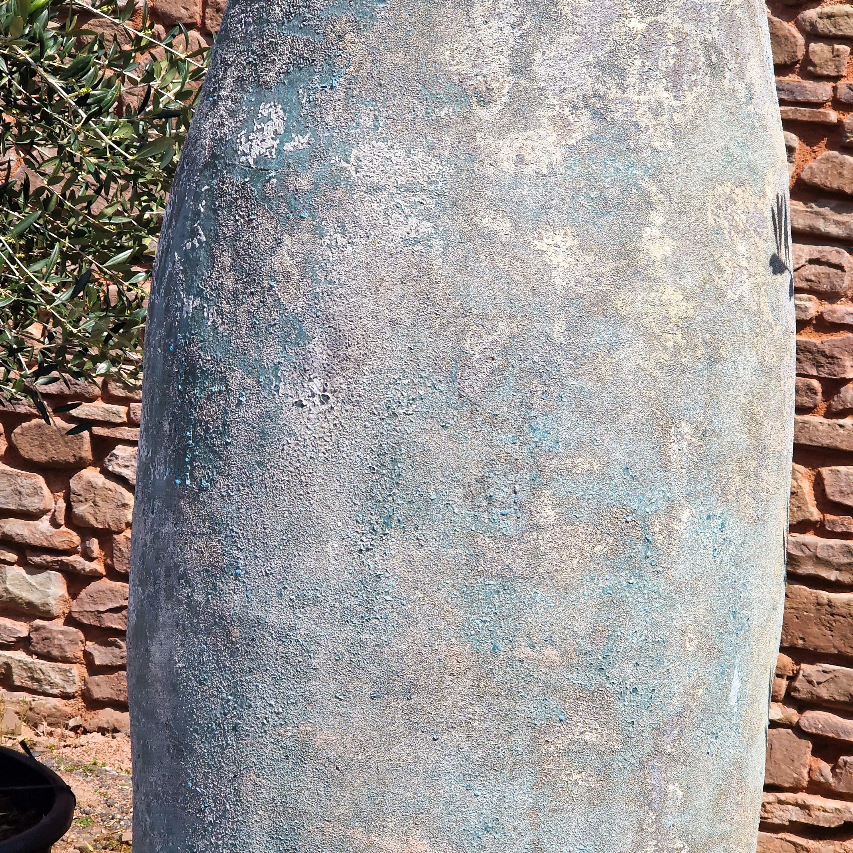 This ginormous sculptural vase features a narrow form and a muted blue glaze. Rather heavy!