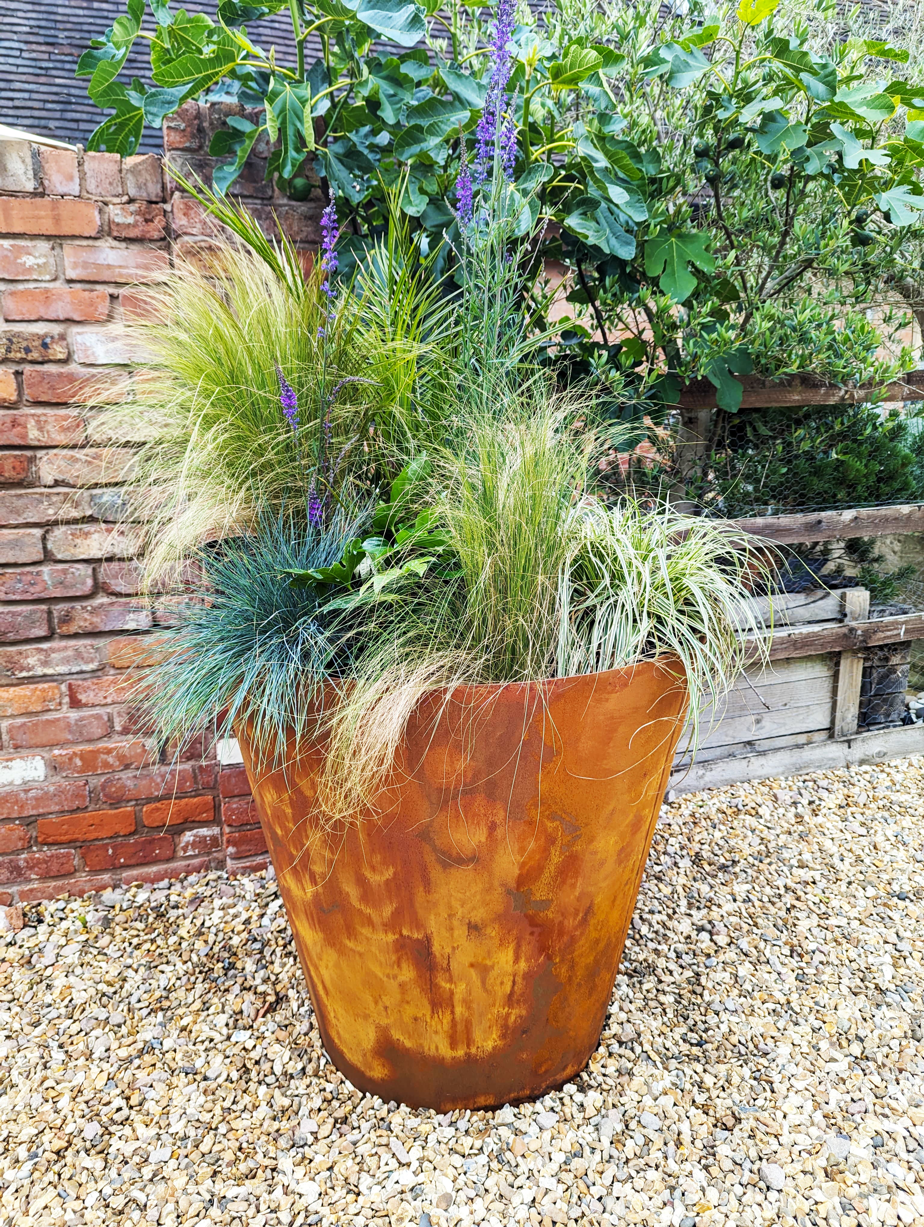 Often called COR-TEN® steel (although this is actually a brand name), weathering steel is durable, low maintenance, and develops a beautiful, natural patina over time. The steel resists corrosion by developing a protective oxide layer when exposed to the elements – it is this which gives it its unique aesthetic – a natural rust finish which gets better with age. It also means your planters will blend beautifully with your garden.