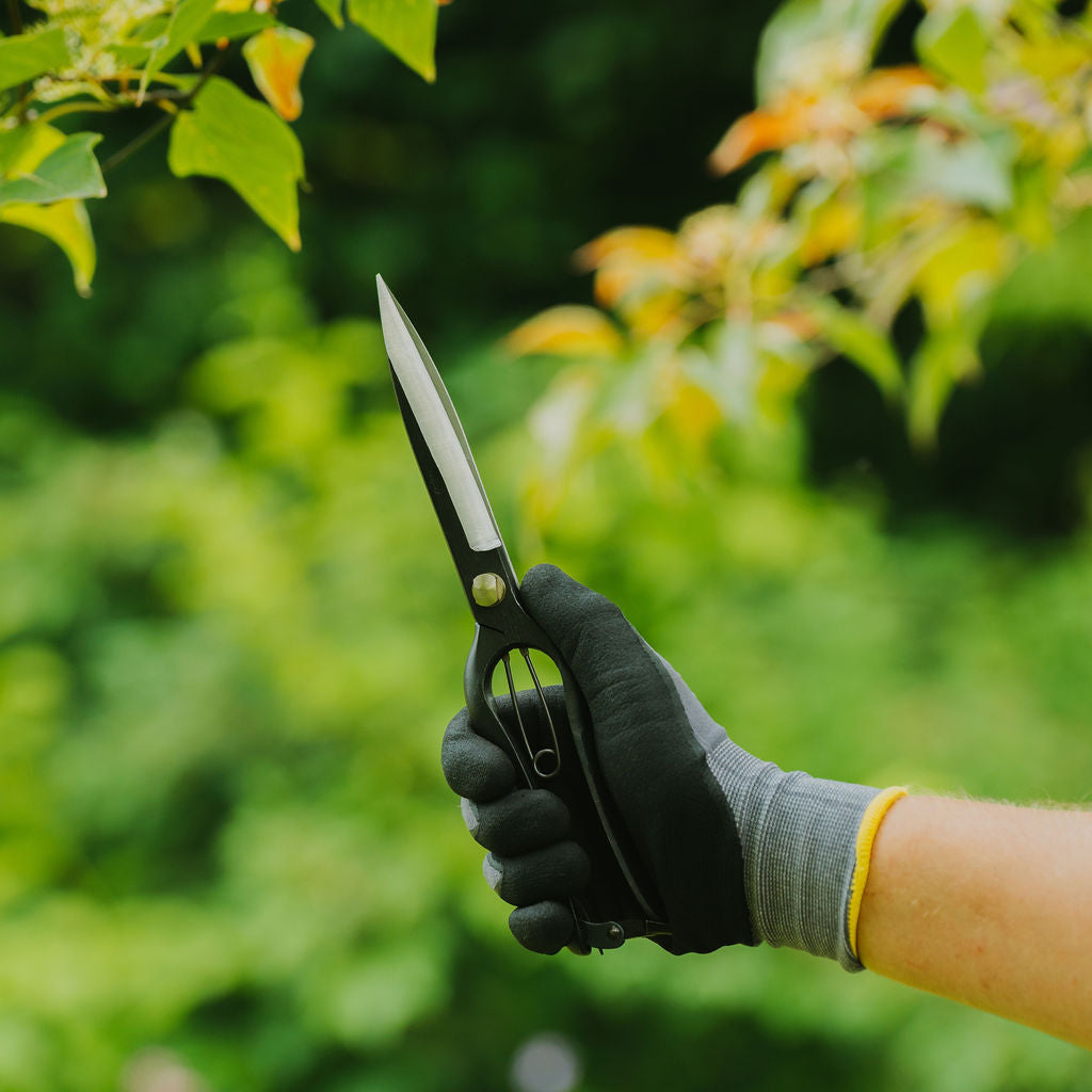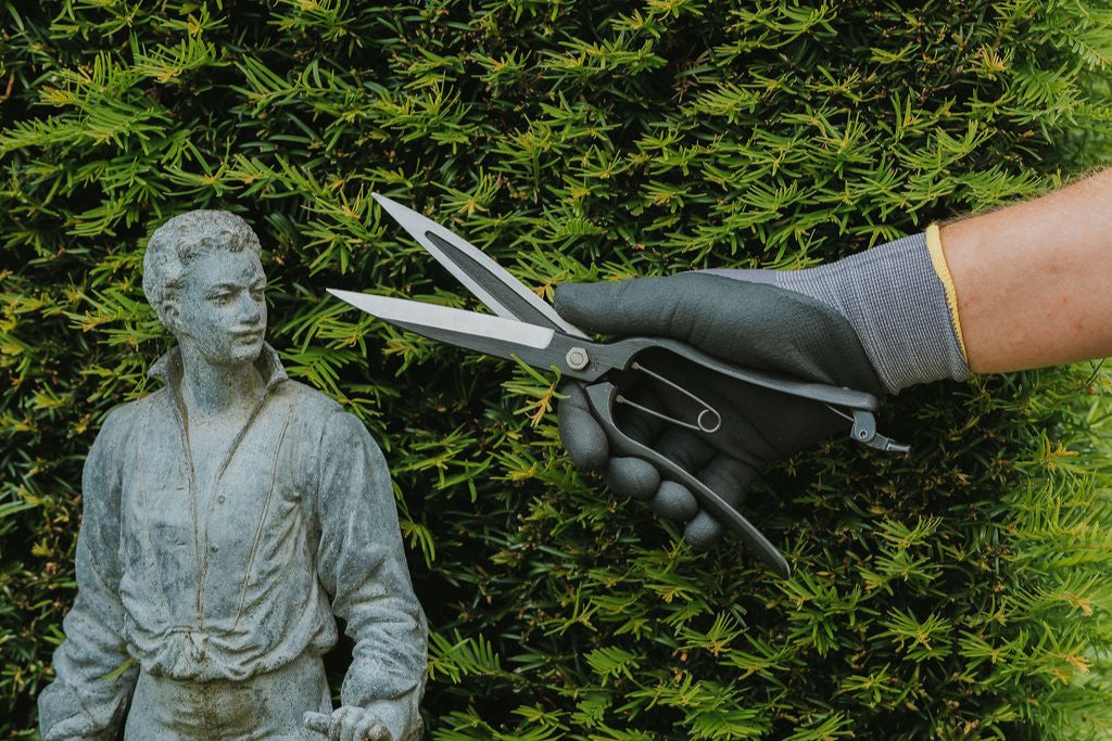 Nothing beats these one-handed Topiary Clippers for box clipping and other topiary: easy on the hand thanks to the 5" blades and spring action, easy on the eye thanks to the graceful, simple design, and infinitely better than ordinary sheep shears (which are fine if you have the forearms of a Kiwi sheep farmer, but useless for the rest of us.) The Japanese name (hakaribasami) means leaf cutters: it’s important not to cut old, hard wood, only soft new growth.