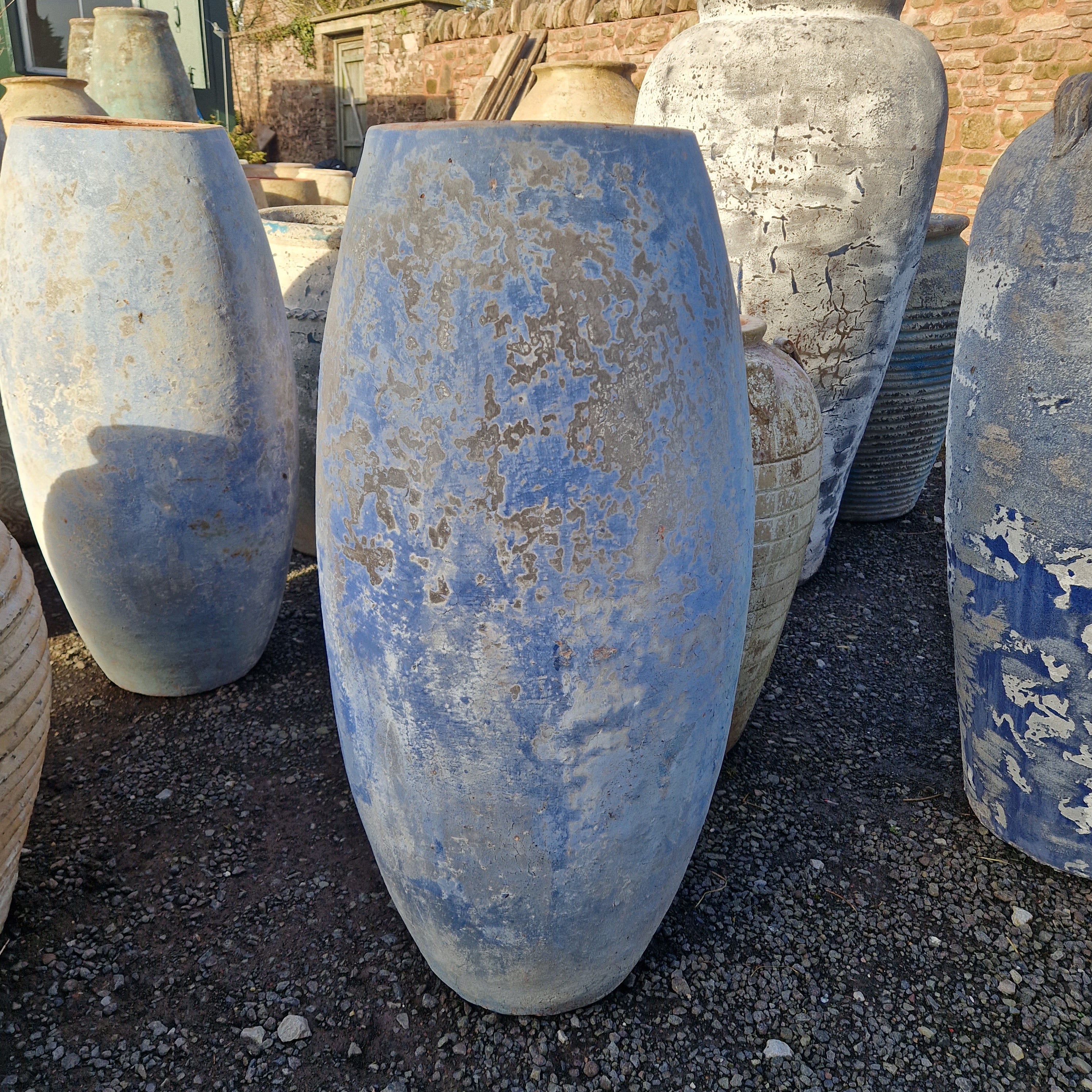 A one-off pair of sculptural glazed ceramic planters featuring a tall, slender profile. The foot ever-so narrower than the mouth of the pot, these are a fantastic solution for more contemporary gardens seeking an exciting scheme.