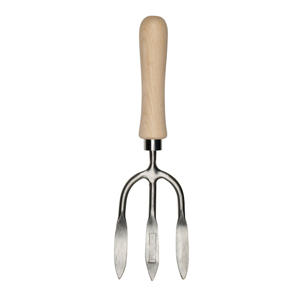 The Sneeboer hand-forged, stainless steel Hand Fork. A useful tool when plants need to be transplanted without damaging the roots.