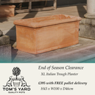 Our very popular hand-made Italian terracotta troughs, now available in a range of four standard sizes.